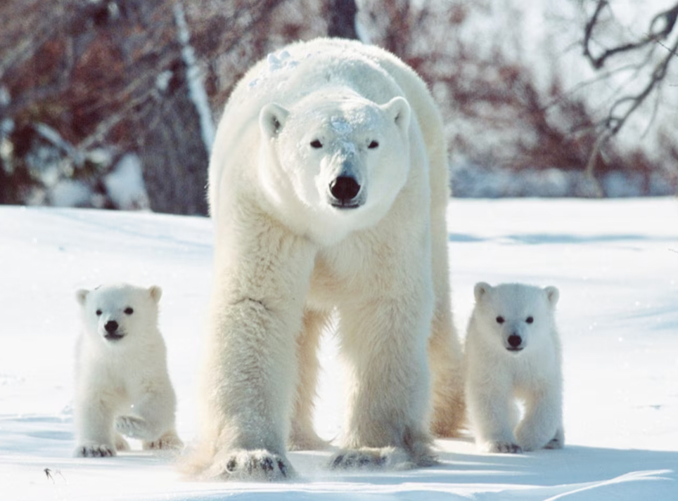Towards the end of the year, pregnant females predominantly retreat to the southeast of the archipelago, where the snow allows them to build their dens. These pregnant females are the only polar bears to hibernate. After several weeks in the dens, they usually give birth to two cubs that are blind, naked, and very small – weighing less than one kilogram. In the protective environment of the den, they are raised on their mother’s particularly nutrient-rich milk for several months until they are strong enough in spring to explore the surroundings with her and start feeding on meat early on. However, the survival rate of polar bears in the first year of life is only 30%. Once they reach their fifth year, they typically survive the next ten years. After reaching the age of 15, their survival probability drops drastically, with starvation being the most common cause of death. They are then no longer able to cope with the sometimes extraordinarily long and arduous journeys and periods of hunger.