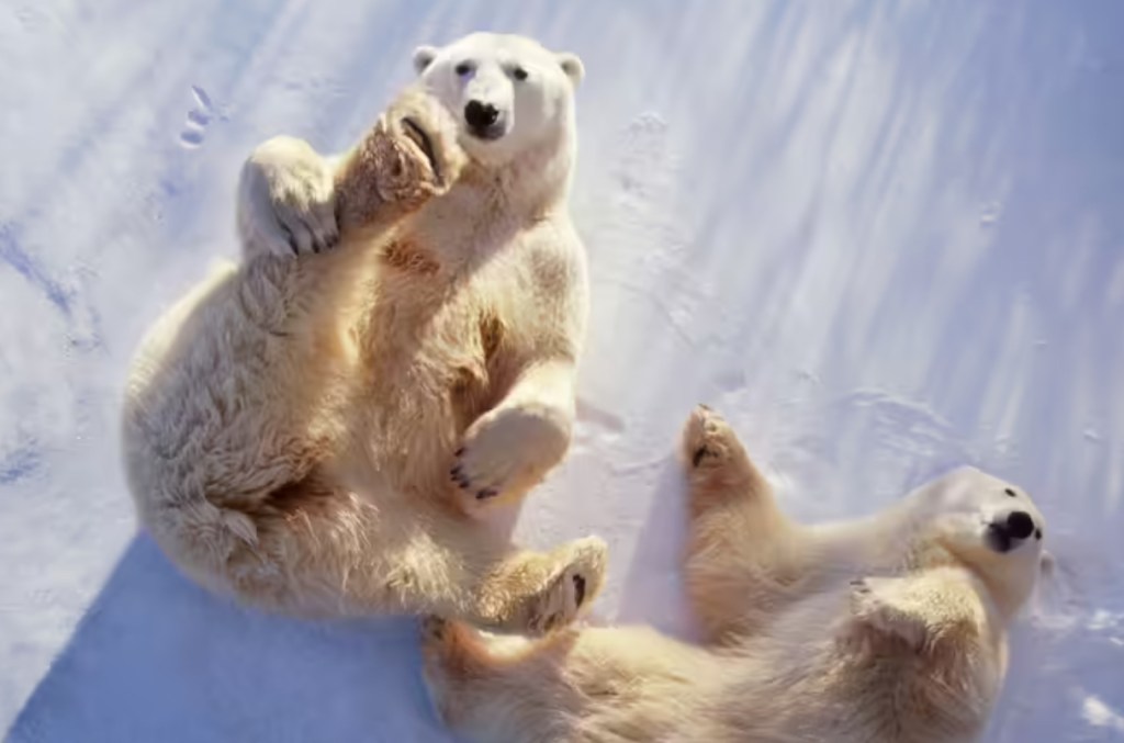 They prefer the regions up to 100 nautical miles north of the ice edge, where the ice is thick enough to support them, and sufficient food is available. In spring, they feed on Ringed Seals and in summer on Bearded Seals, both of which are strictly dependent on sea ice. However, they also prefer to mate on the sea ice, typically in spring. At this time, tracks can be seen in the snow left by various polar bears at the same spot. Male polar bears fight for the favour of the females, resulting in them often bearing numerous scars as they age.