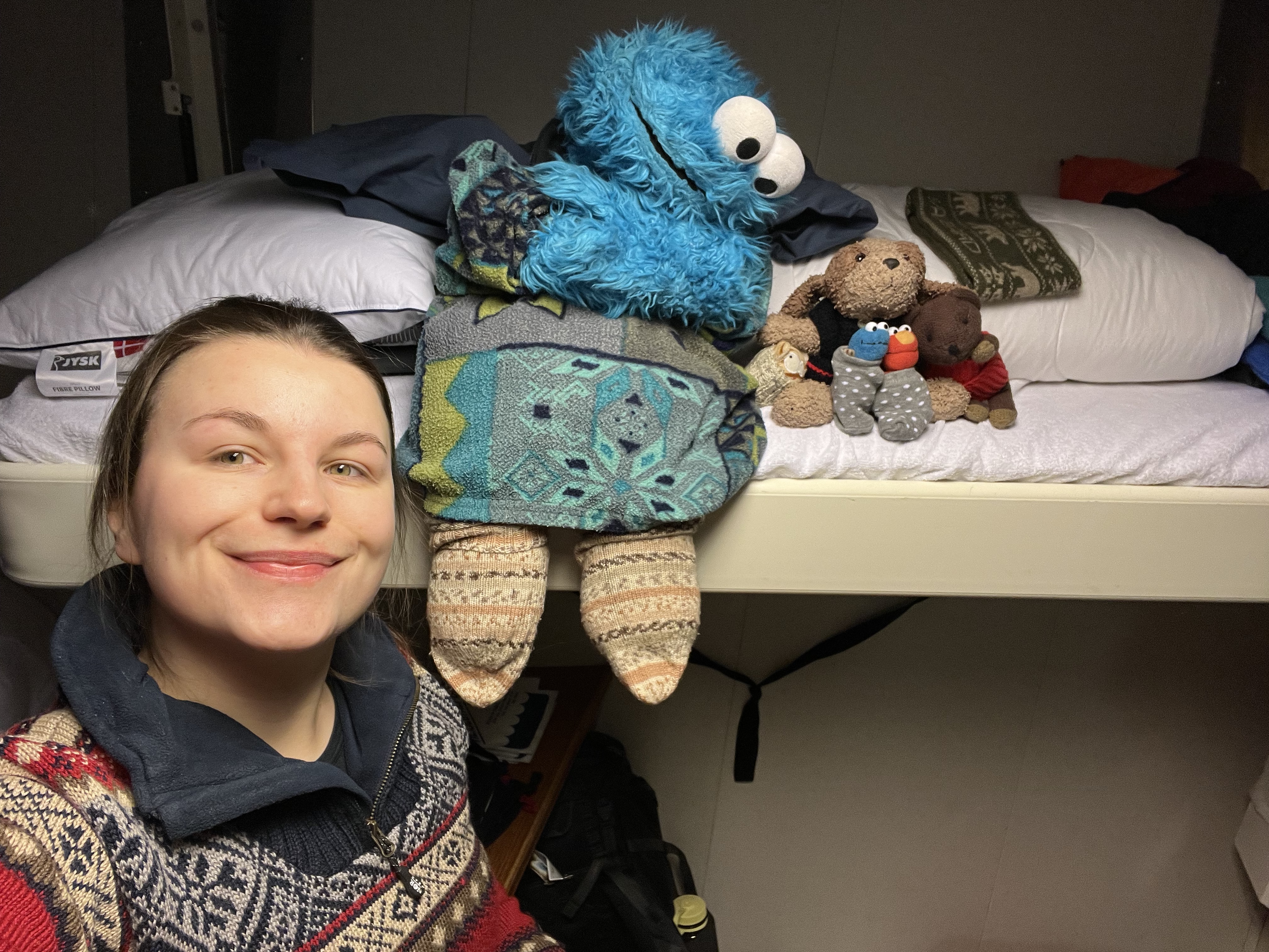 But we weren’t locked away the whole time below deck in our labs and microscopy rooms on the Helmer Hanssen. Quite the contrary. In addition to three excellent, extensive, and incredibly varied meals a day, cake was served twice a day. A luxury you’d typically expect only in all-inclusive resorts. Unlike the spacious rooms in such hotels, though, the cabins on the ship were cozily small and packed with students. Three students were accommodated per room: two in a bunk bed and one more in what was called an ’emergency bed,’ where I slept and thoroughly enjoyed. I made it more than comfortable with my father’s sleeping bag and my own personal crew.