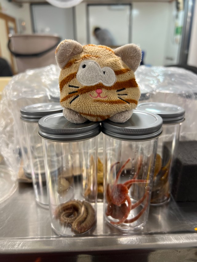 But the excitement didn’t wane in the following days either. On Day 3, we moved further from shore to a suspected seep site. A seep is an area on the ocean floor where gases and fluids like methane or carbon dioxide emerge from the earth’s interior. These seep sites host unique ecosystems where organisms gain energy through chemosynthesis, a vital energy source in the ocean’s dark depths. We wanted to see if the diversity of organisms was different here. Indeed, the group studying benthos that day found an unusually high number of brittle stars. We still need to determine whether this was due to the seep, the depth of the water, or other factors. Our group analysed phytoplankton that day, a topic I was incredibly excited about. And I was not disappointed. My passion for organisms seems to actually increase with their small size. Seriously, the incredible diversity these single-celled organisms display is simply fascinating. I would have loved to dive deeper 😉 into this subject, but of course, time was limited. It’s something I might really consider for a master’s degree in the future.