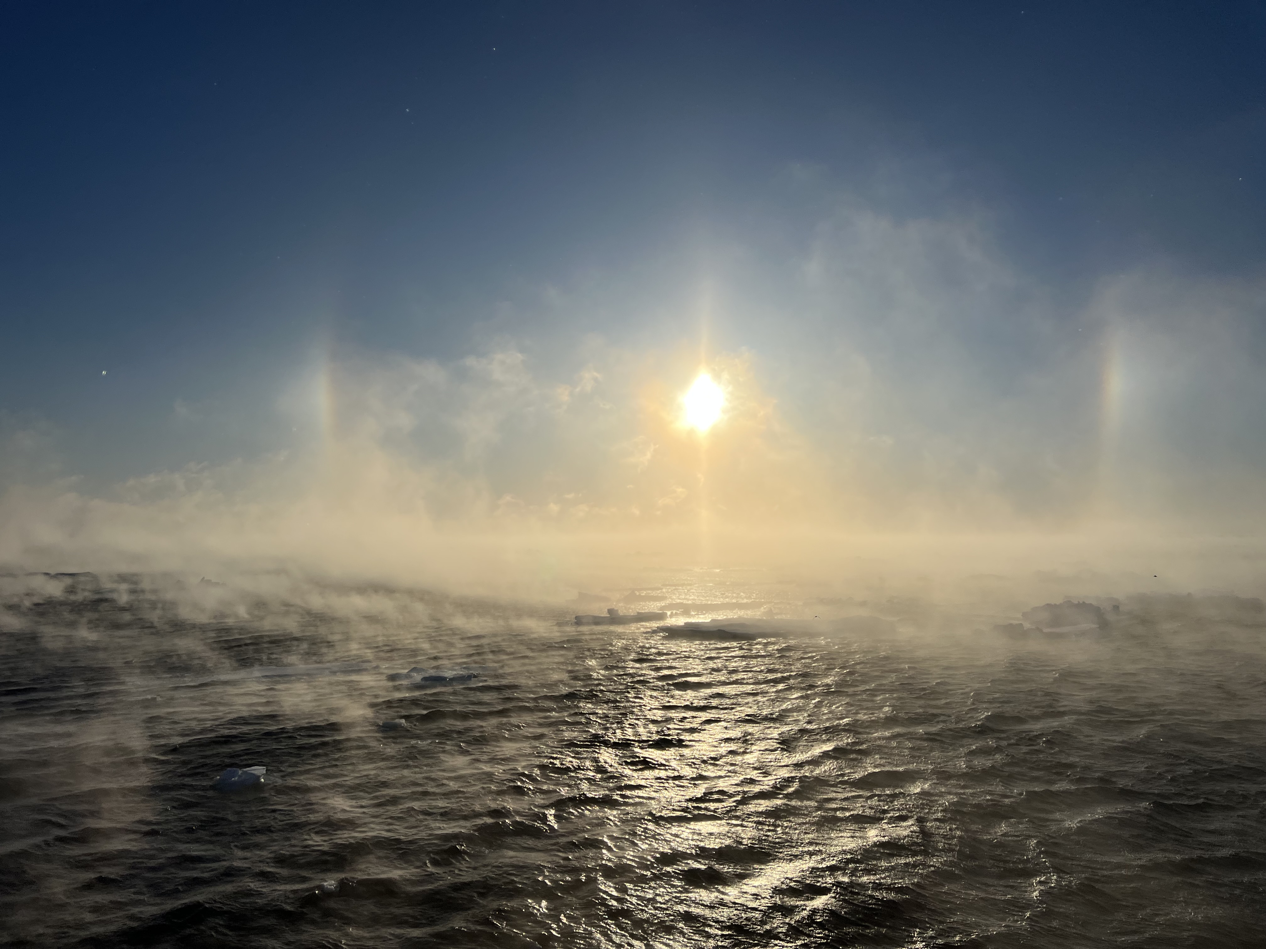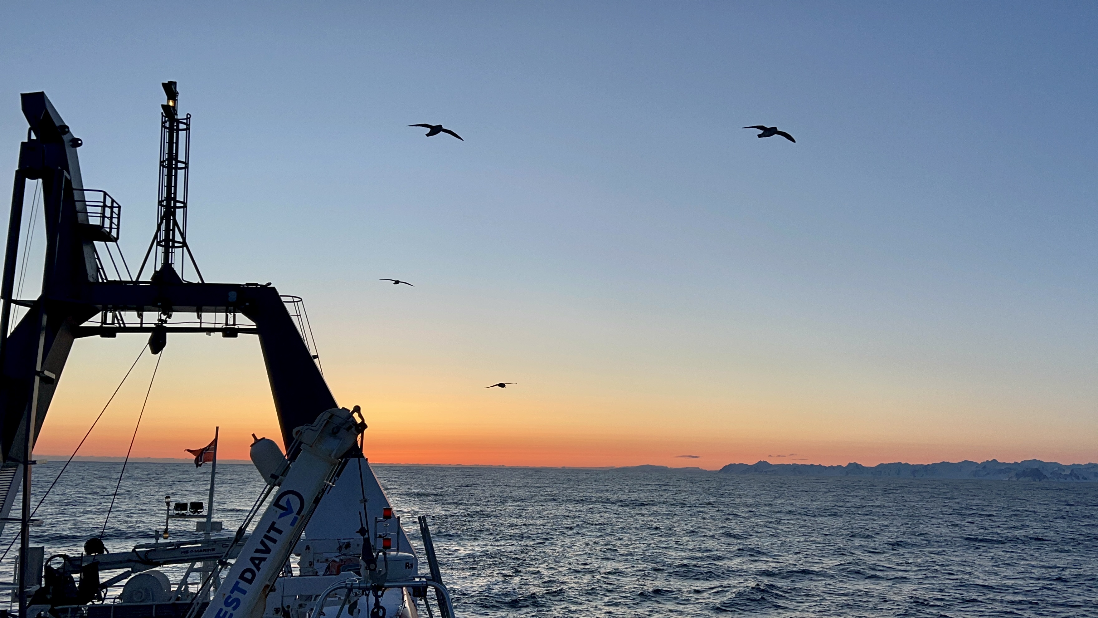 Day 3 ended again with a special event. After the last samplings at the seep site, we moved further north and soon encountered ice. This situation is not only visually stunning but also immensely exciting for the ears. The Helmer Hanssen can break through a certain thickness of ice floes without problems, but we were not permitted to break through closed ice sheets. Therefore, we chose the marginal ice zone edge as our northernmost location and crossed the 80° latitude that night. The sun no longer set at this point and hovered close to the horizon, making the thousands of ice floes and icebergs around us glow golden. Breathtaking! And these moments were crowned by the countless seabirds swirling around the Helmer Hanssen. In the fresh, cold, windy air with the ‘kriiie kriiie’ of the Northern Fulmars in my ears, these moments on the bridge were the absolute highlight of the entire cruise.