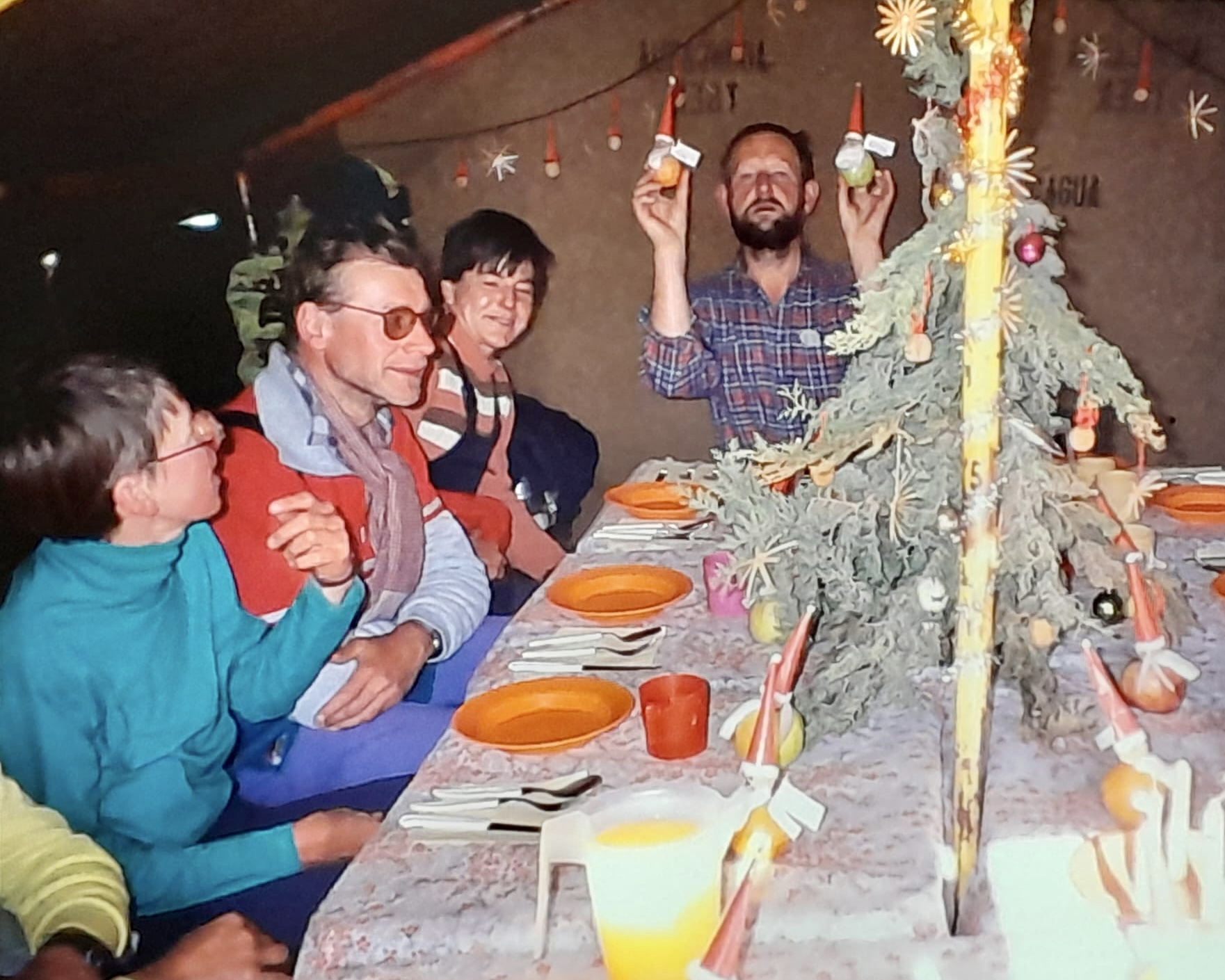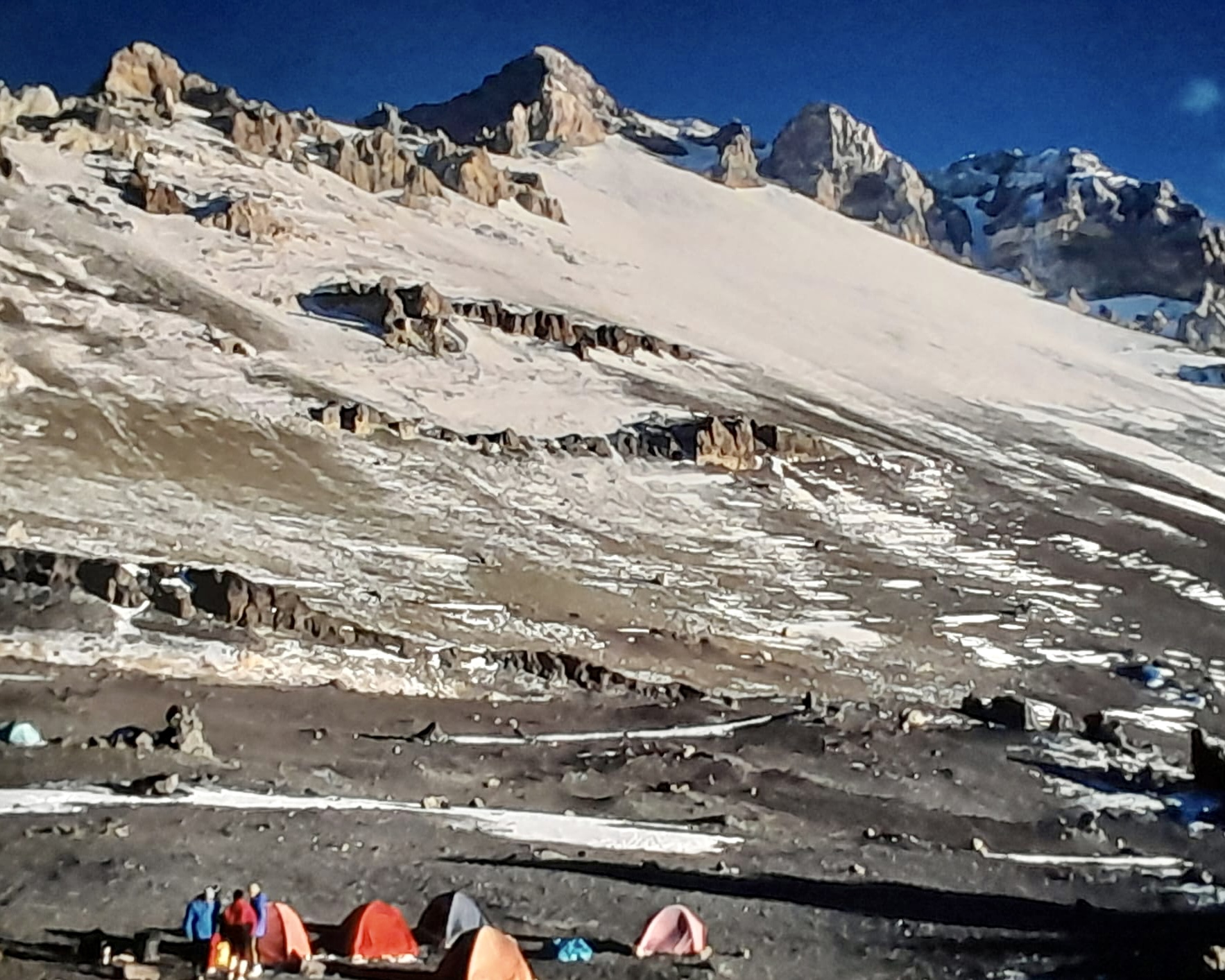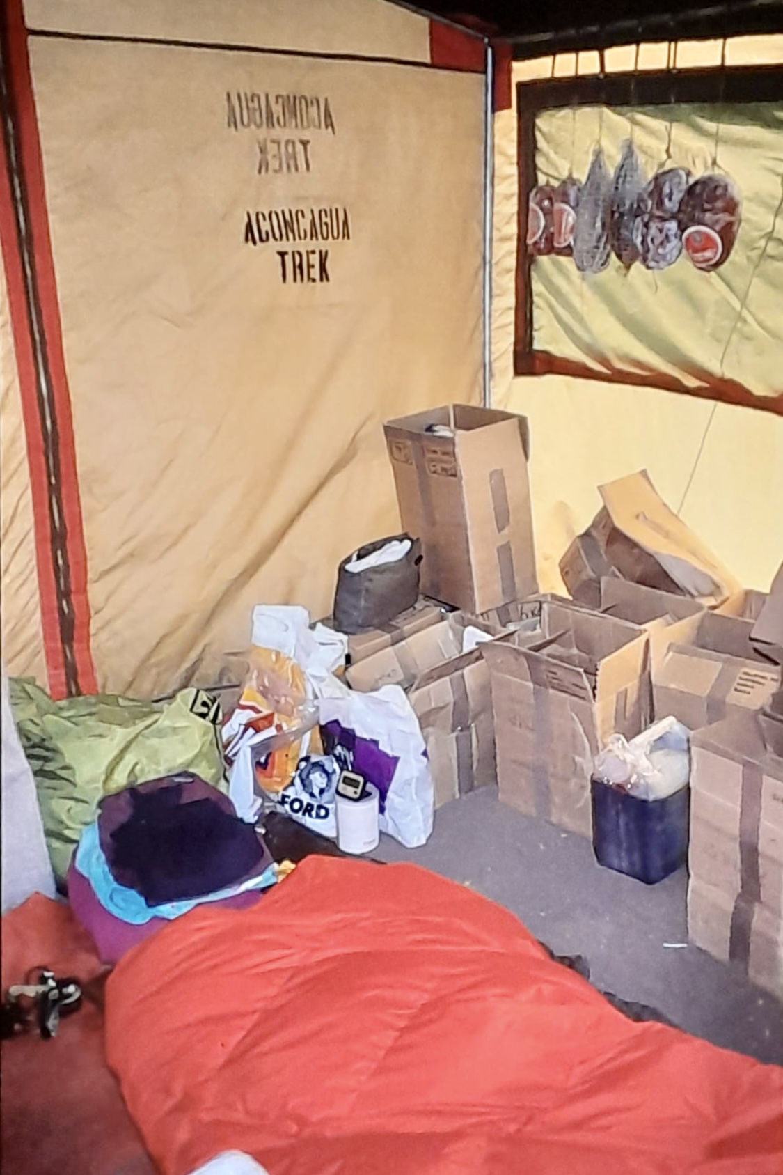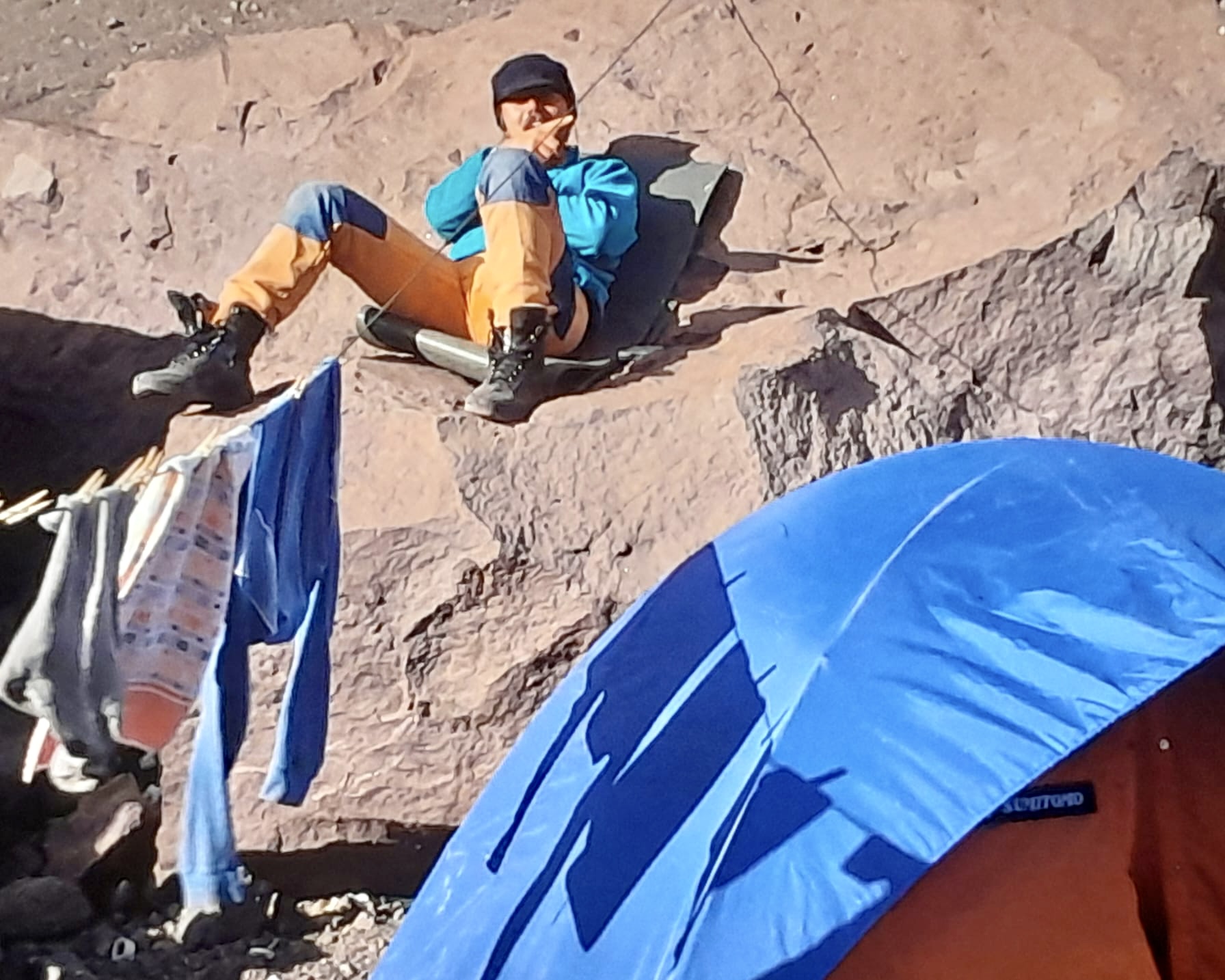 Eine schöne und witzige Situation war, als wir Weihnachten im Basislager feierten. Wir hatten Kerzen aufgestellt und ich habe aus den Tiefen meines Seesacks zwei Christstollen von der Oma (Papas Mutter) und ein Früchtebrot herausgeholt. Unsere Übersetzerin, die dort an einer heimischen Schule gearbeitet hat, dekorierte alles ein bisschen. Es war sehr heiß im Basislager, aber wir haben den Christstollen gegessen und Weihnachten gefeiert. Das war ein besonderes Erlebnis, Weihnachten in der Hitze des Basislagers am Aconcagua zu verbringen.